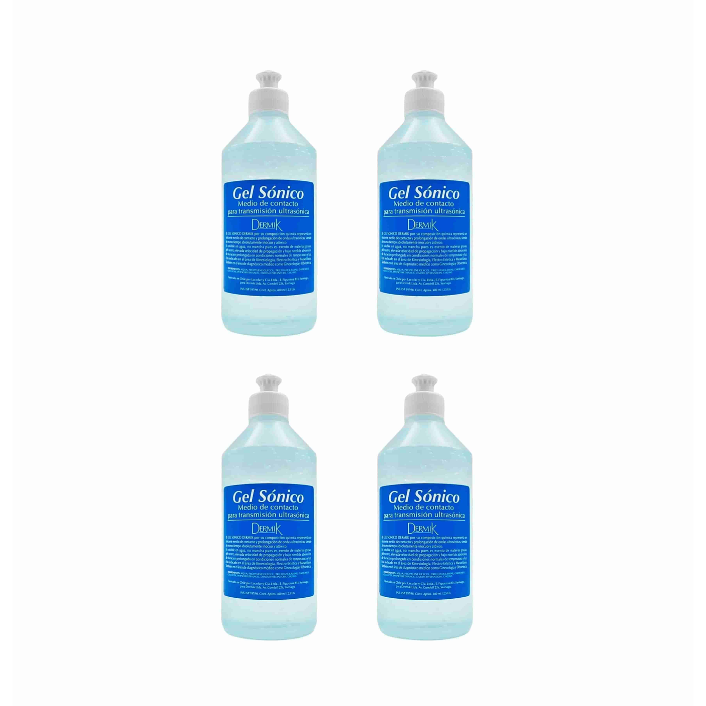 Gel sónico dermik para aparatos de estética rostro y cuerpo levinia Chile pack 4